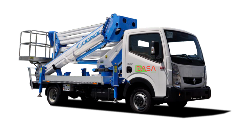Piattaforma aerea 20D doppio articolata della Serie E, alta 20 m e con uno sbraccio massimo di 9 m. Autostabilizzante e in sagoma, con sistema di chiusura del cestello completamente automatico. Portata del cestello, installata su un autocarro da 3,5 t, con comandi elettrici. La piattaforma aerea 20D ha una rotazione della parte aerea di 700° e la rotazione del cesto in alluminio (1400x700xh 1100 mm) è di 90°+ 90°.